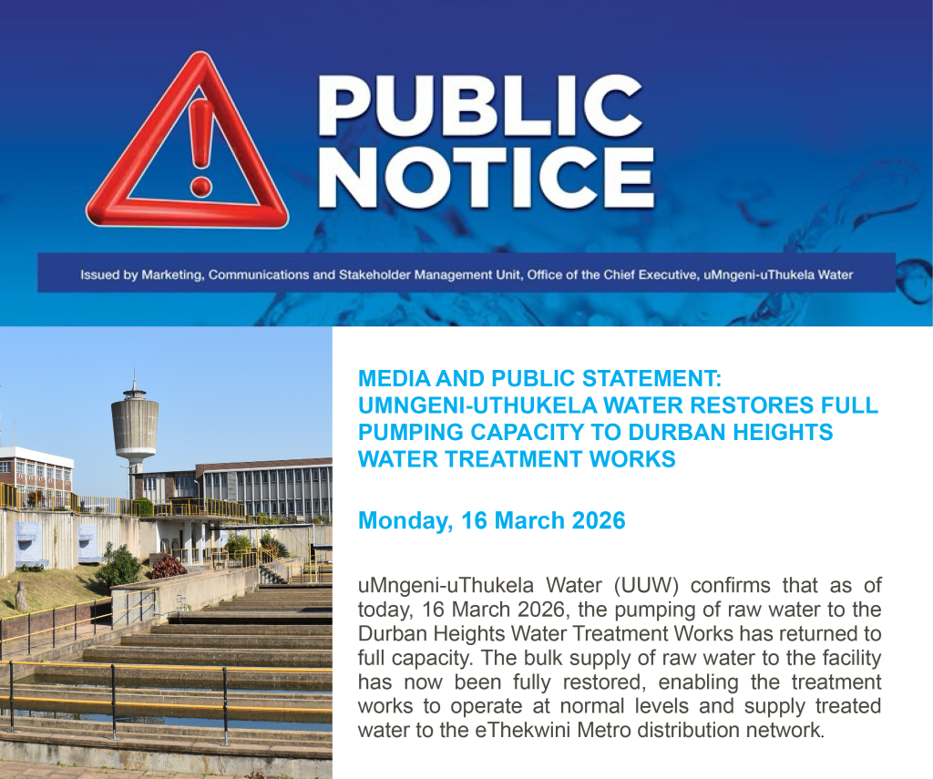 uMngeni-uThukela Water offers a thirty six (36) months training programmes under the below mentioned field. Applicants who are residing in KwaZulu-Natal province and who are living with disability are invited to apply so as to gain practical work experience. These opportunities will be available in Richards Bay.